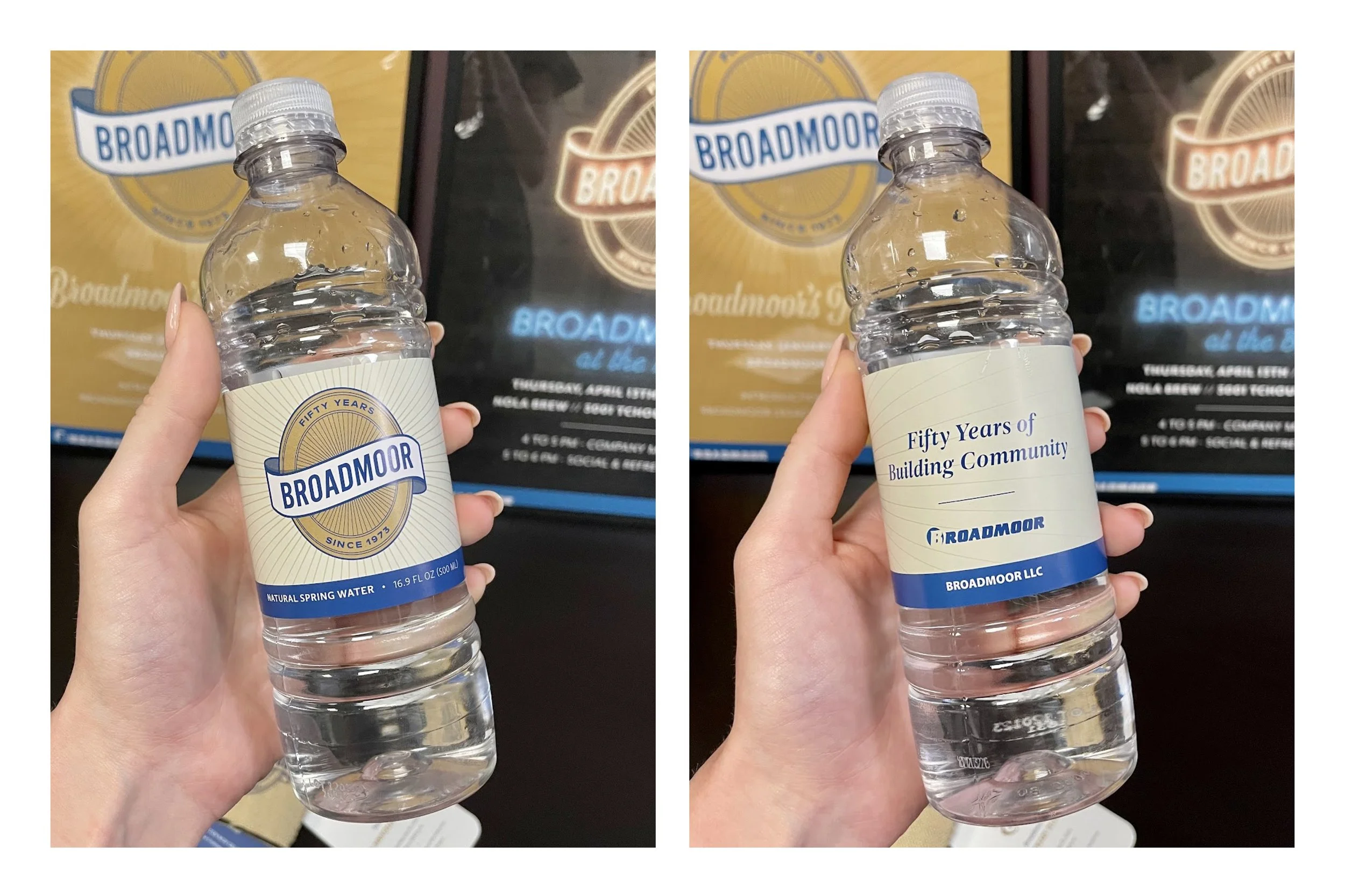 A crisp, white banner with "Broadmoor" wraps around a gold seal engraved with "Fifty Years," "Since 1973," and a burst pattern. The graphic has movement, depth, and contrast from both technical and thematic perspectives.